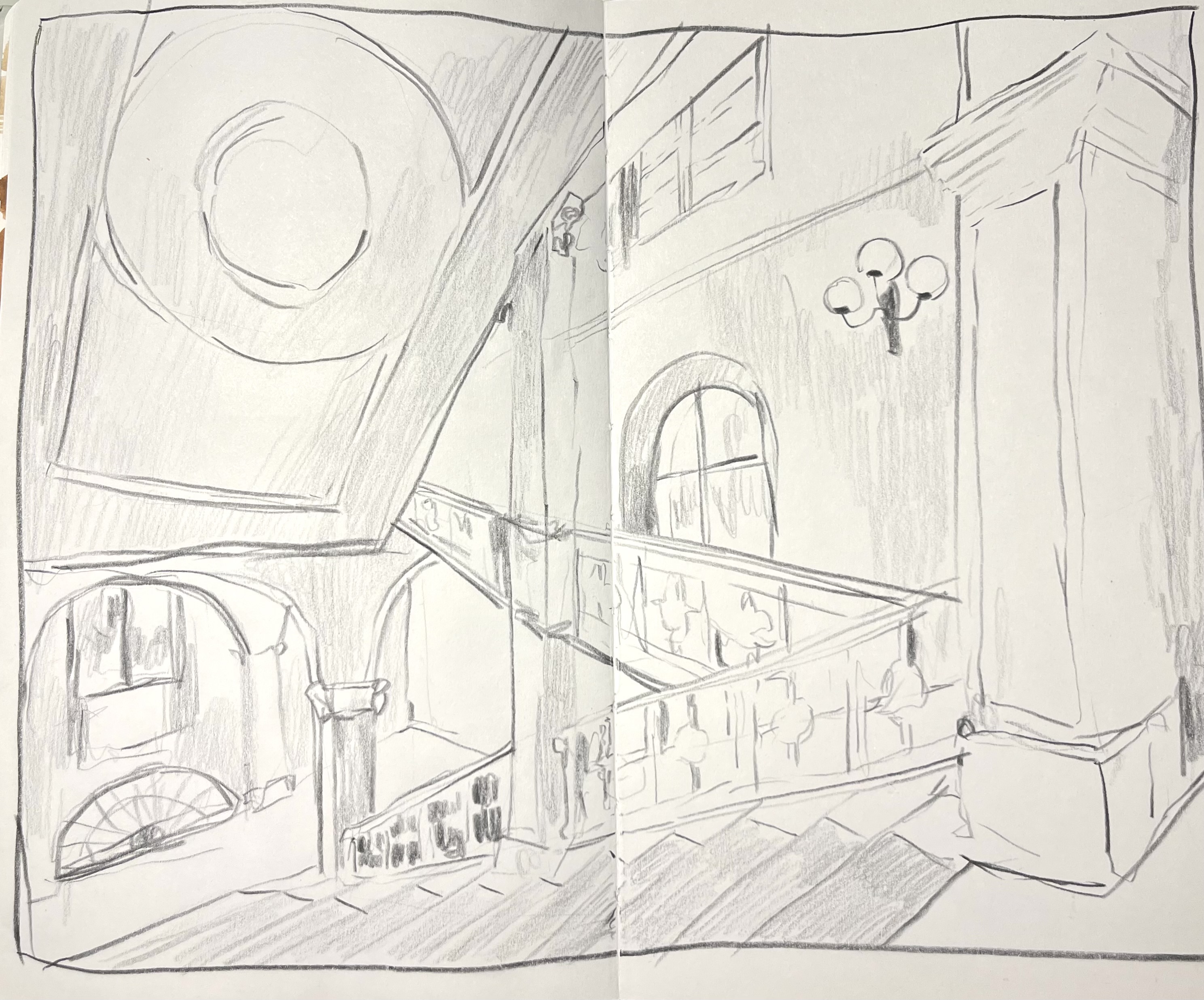 17:45: Meeting at the same place, showing our sketches and sharing our experience.