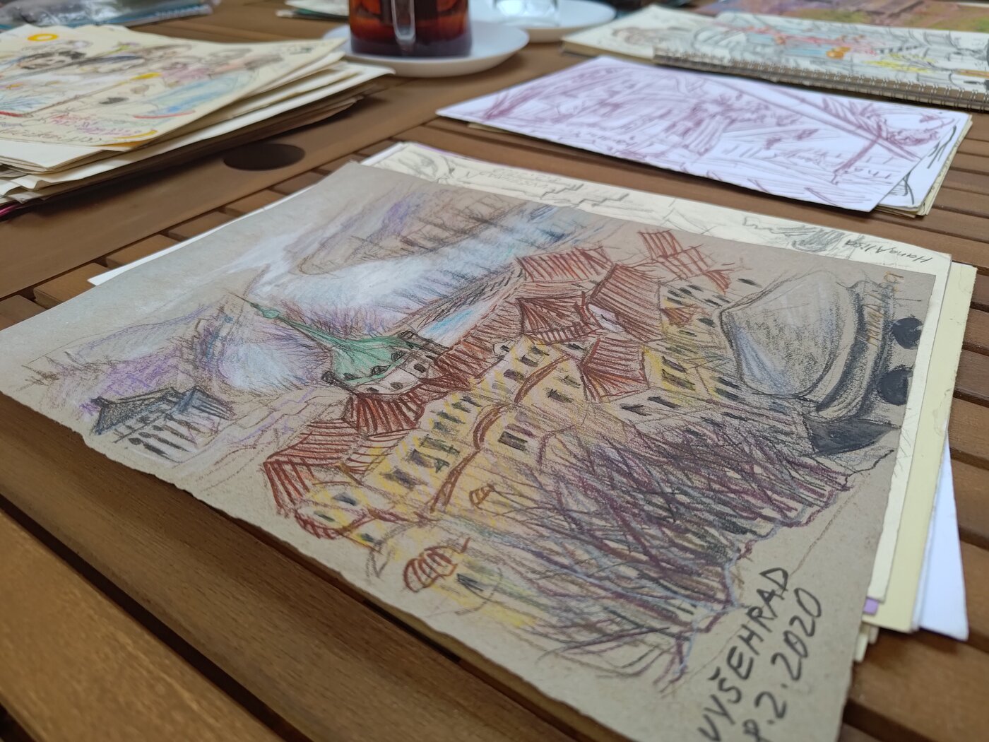 “Hana’s drawings captivated me with the way they bring precise details to life with expressive lines. They give the impression that nothing is static -- or in her own words: everything “dances before our eyes”. Doodling (or čmárání as she calls it) allows her to capture the mood and spirit of the places she visits, events she records, and meetings she has with friends. She deliberately chooses simple means - pencils and papers of various colors and qualities -- using them to take on new challenges with an openness and a distinctive temperament. Meeting her was an immensely inspiring experience for me.” - Milan