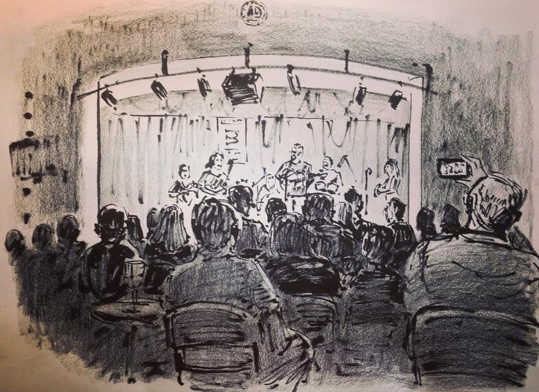 This time we are going to sketch during the concert of Ira Mimosa in the Popmusem. We can stay in the museum even after the concert to sketch the museum itself with all the musical instruments and other devices.