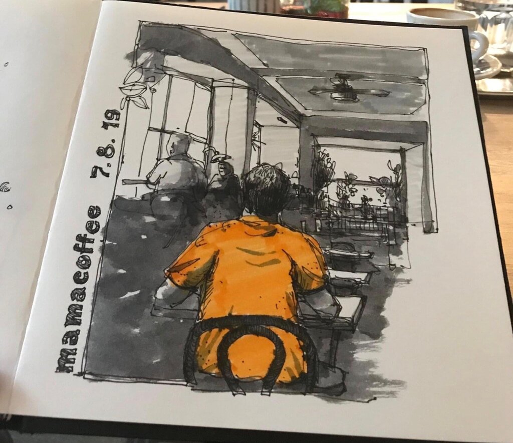 5:00 pm: We will meet inside the café (we have a reservation for 12 people). Sketching and chatting over a cup of something nice.