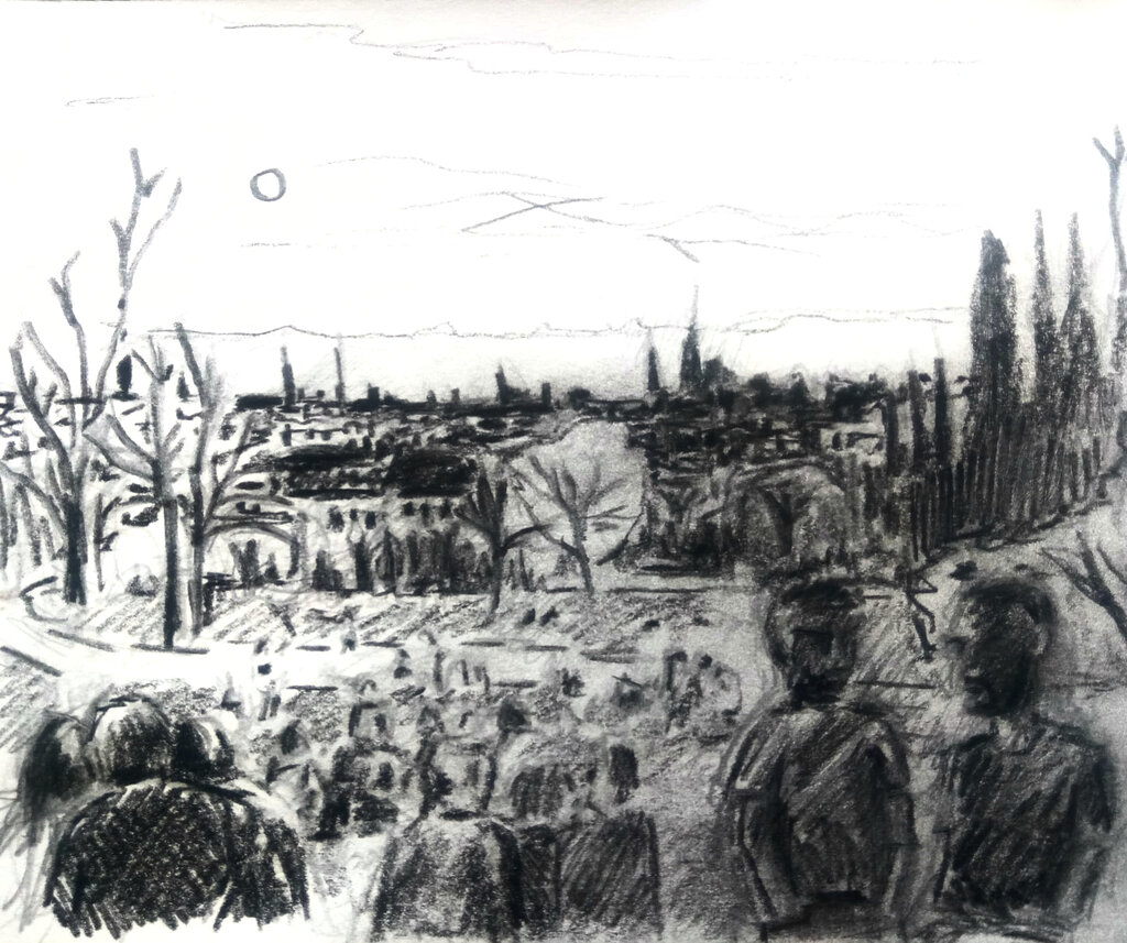 7 pm: Meeting at the same spot, showing our sketches and sharing our experiences.