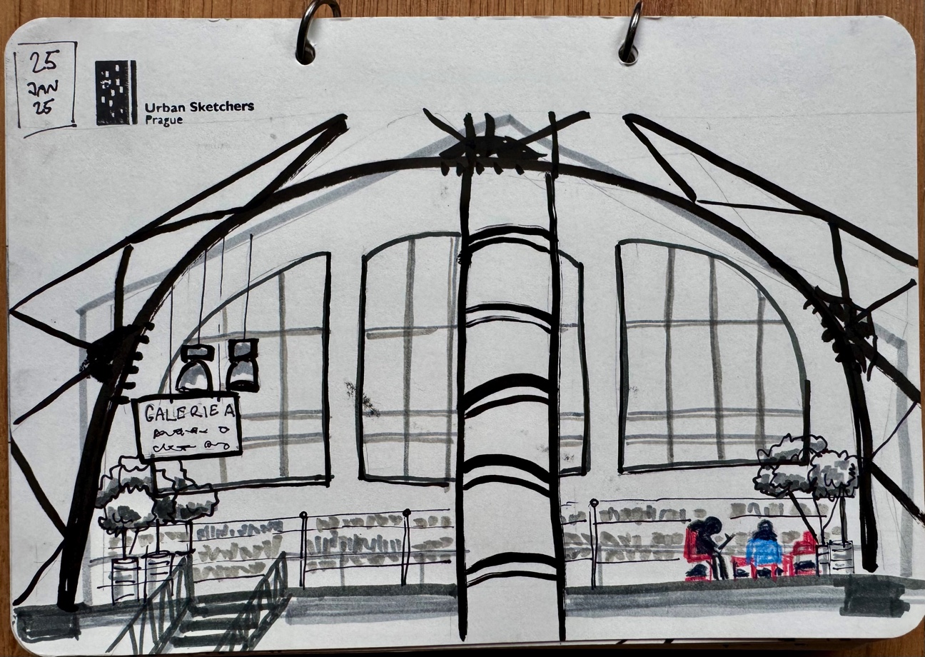 This exhibition is the culmination of a wonderful five-month collaboration between Urban Sketchers Prague and the Municipal Library of Prague. Our members visited nine branches, sketching the quiet moments, the lively interactions, and the beautiful architecture that gives each location its distinct vibe.